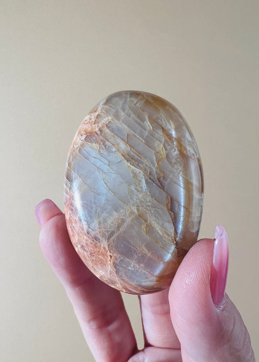 Sold outPeach Moonstone Palm Stone