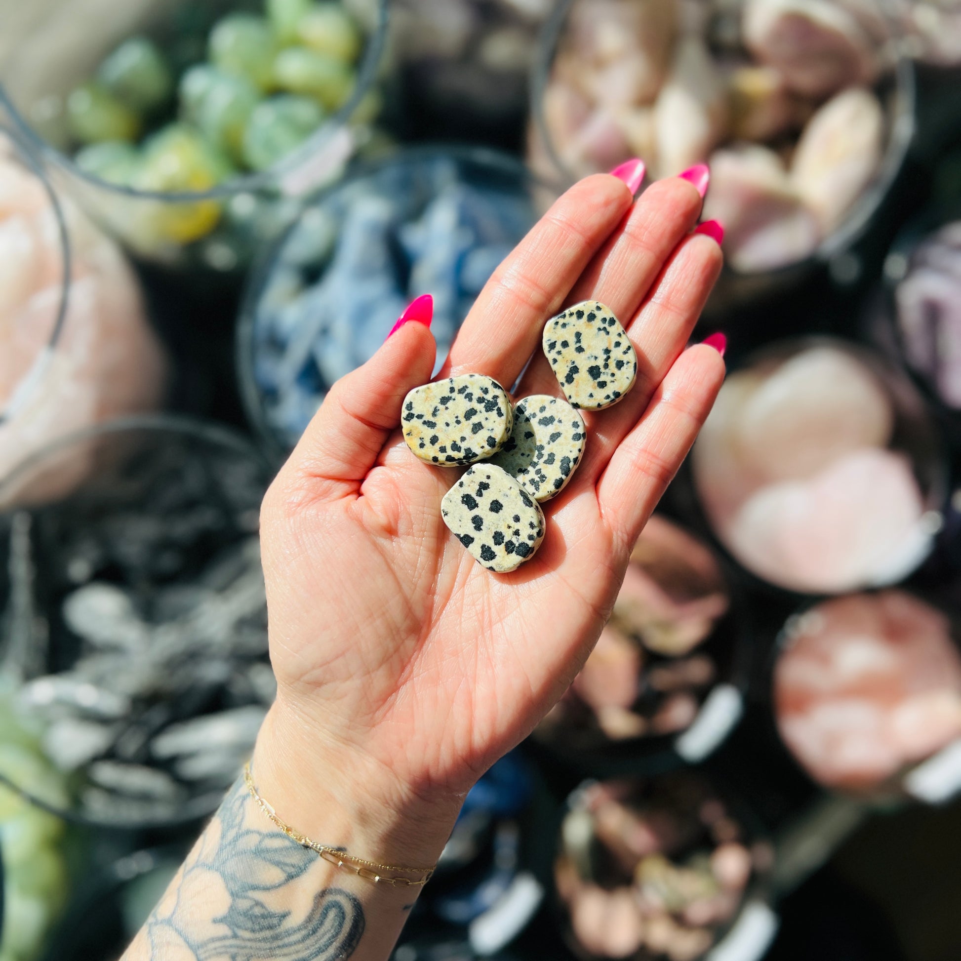 Dalmatian Jasper is known for its grounding and protective energy. It promotes joy, playfulness, and a sense of balance, helping to dispel negativity and encourage a positive outlook. Often used to strengthen the connection between mind and body, this stone is also believed to enhance loyalty, reduce disillusionment, and support emotional healing. Its unique spotted appearance symbolizes harmony and the integration of opposites.