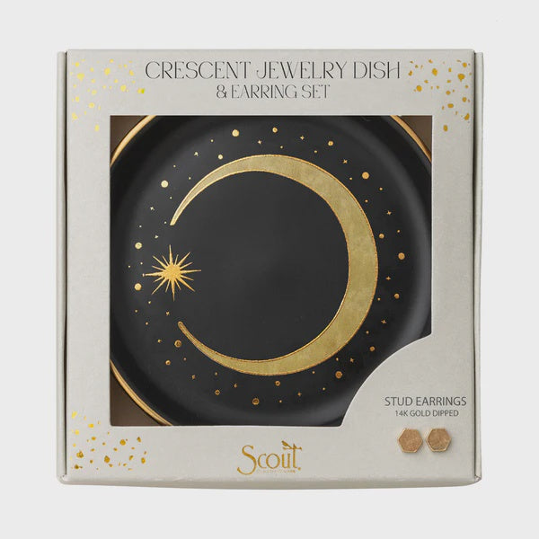 - Set includes a ceramic jewelry dish & a pair of 14K gold dipped earrings.