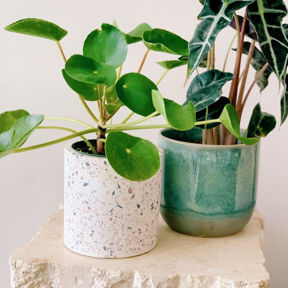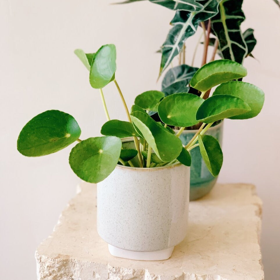We are super excited to be able to offer this adorable little plant. The Chinese Money Plant is easy to care for, let soil dry between waterings- it doesn’t like soggy soil, and place in bright indirect light. The big bright green pancake shaped leaves offer a big pop of color. Plant several together for a bushier look.